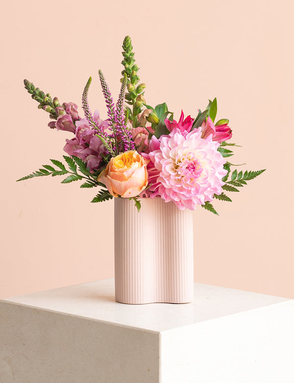 Alongside our signature bouquets, we also have other services such as our flower delivery subscription which delivers fresh flowers regularly every fortnight or month. Our blooms + vase delivery options are perfect for someone getting flowers for the first time or want to spruce up their space with our range of exclusive Marmoset Found flower vases. And lastly our Blooms VIP service which rewards VIPs with free delivery for a whole year.