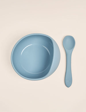 Giggle & Sprout Silicone Bowl & Spoon - Blue