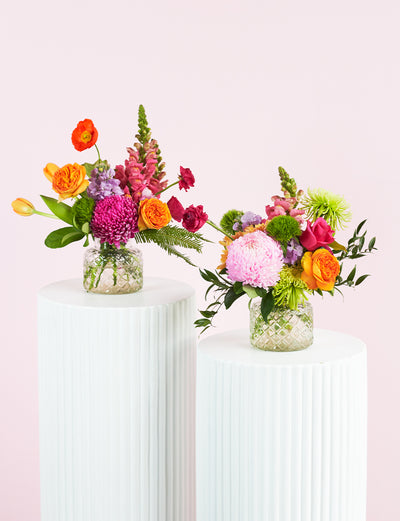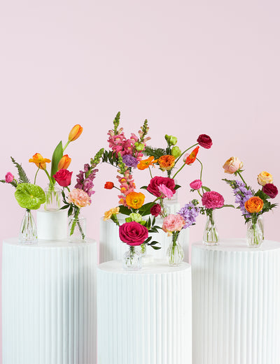 Let us take care of the details. Our curated arrangements are designed to bring a pop of delight to any event. Choose from bud vases, centrepieces, or presentation bundles in your choice of Whites, Pastels, or Brights.