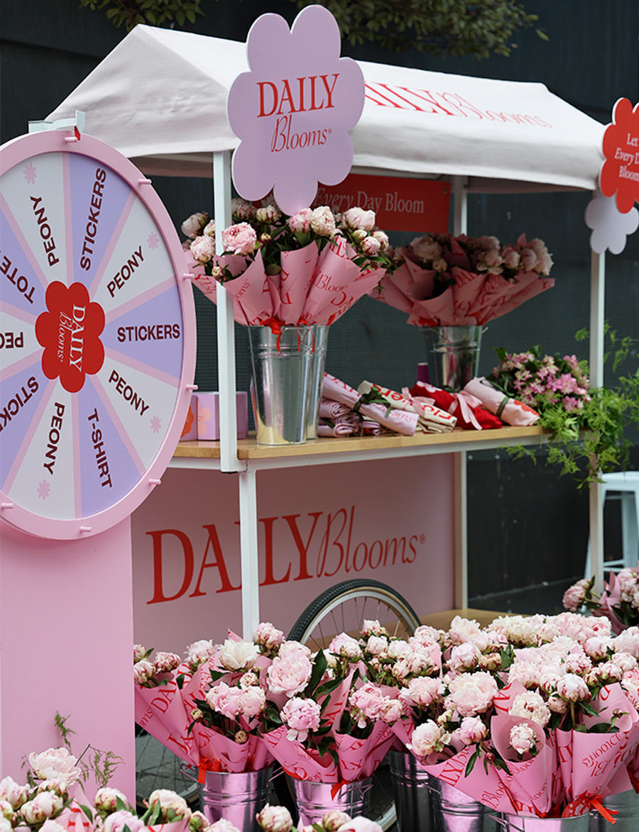Visitors could spin to win a peony, a Daily Blooms tote bag, T-shirt or sticker, plus scan a QR for a chance to take home a $250 peony bouquet.