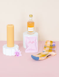 Inside, they’ll find a luxe pillar candle in caramel, a pair of fun and colourful Tootsie Checkered Socks to keep their feet cosy, and a handcrafted Maybe Sammy Chamomile Martini Cocktail to help them unwind in style. To top it all off, a cloud of Fluffe Cotton Candy in either Rose or Ribbon adds a whimsical treat to make them smile.